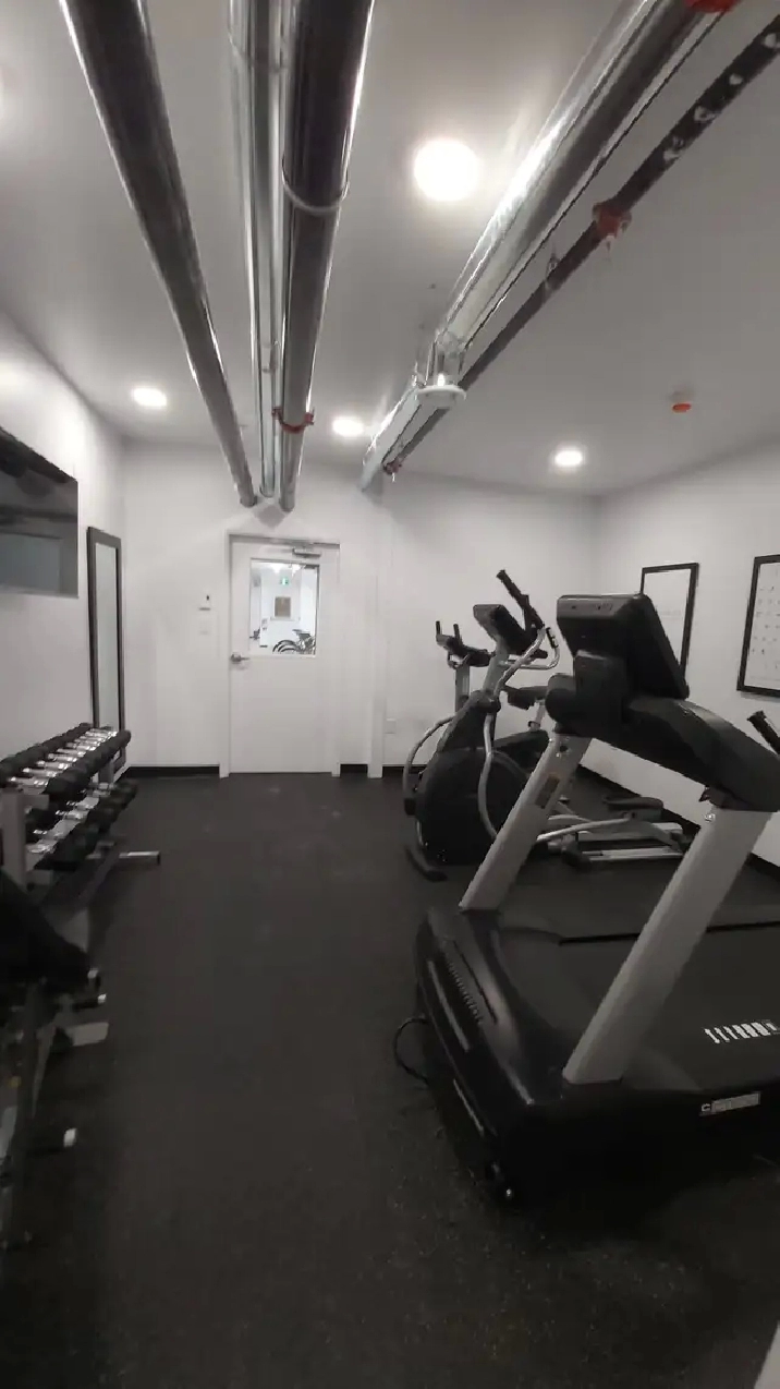 This secure building offers secured entries with 24-hour video surveillance and a front door entry panel that calls directly to your landline or mobile device, allowing you to grant entry with the push of a button. Residents can enjoy access to a gym, social room, and a community garden at no extra cost. The building also features elevator access, storage units, and controlled entry for added security.