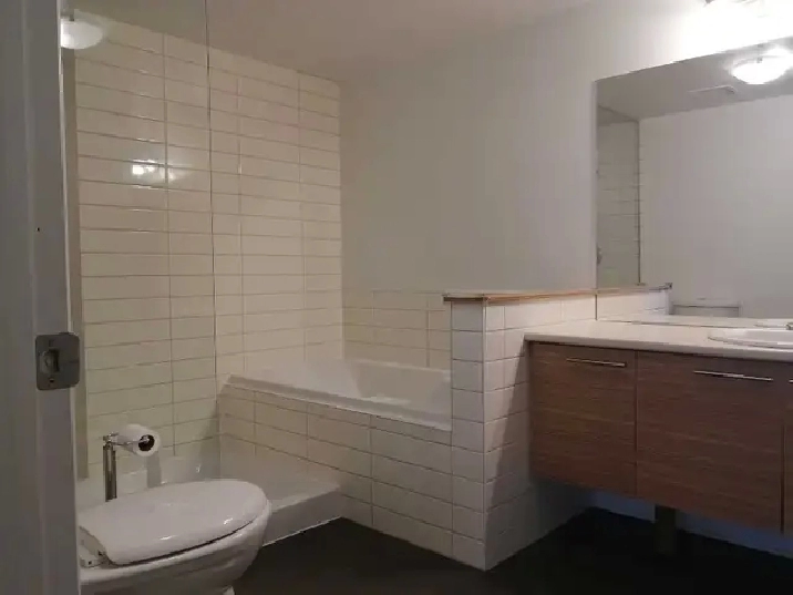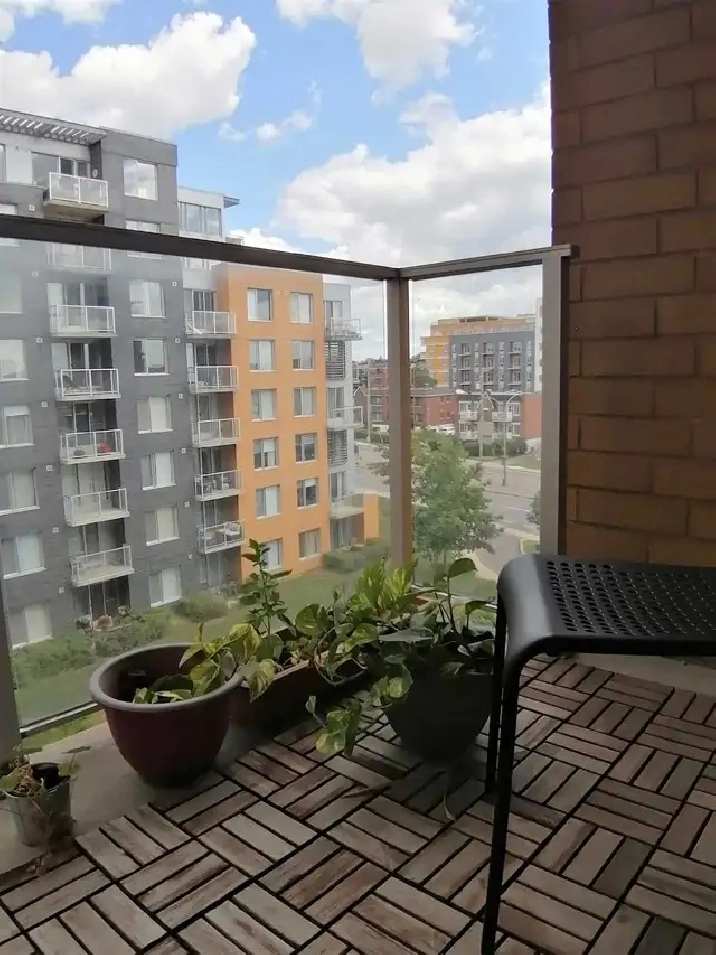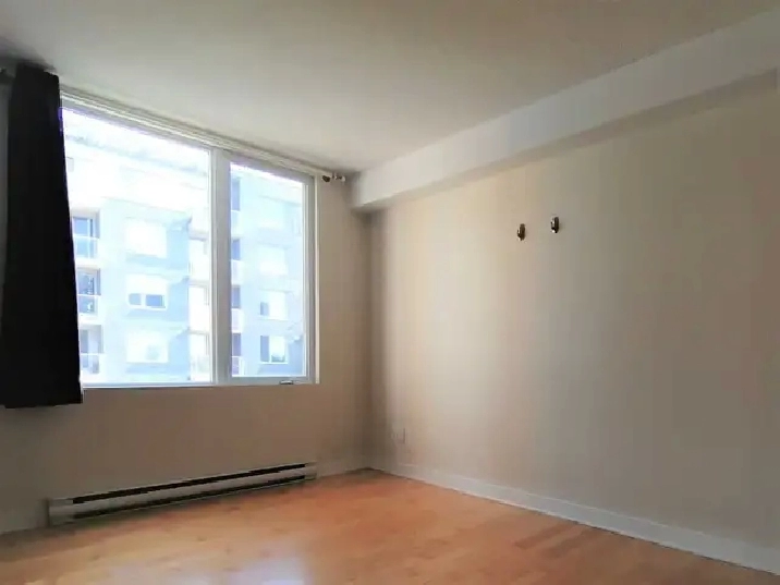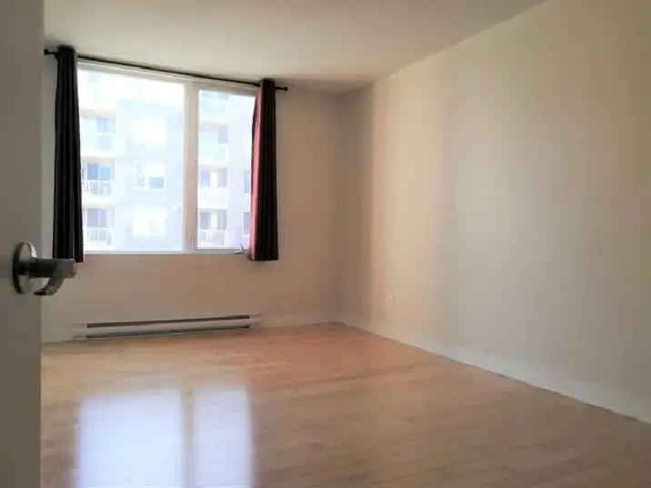 The condo is a big 4½ with big open kitchen and living room, one bathroom with separated shower and tub, 2 big bedrooms and 1 balcony. Appliances are included (range, dishwasher, fridge, brand new washer/dryer) and a new A/C PTAC unit.