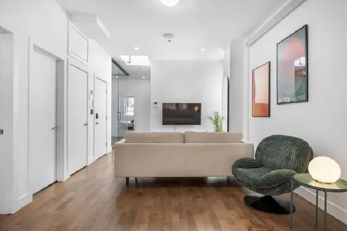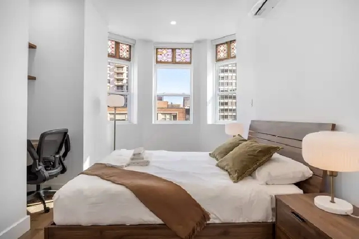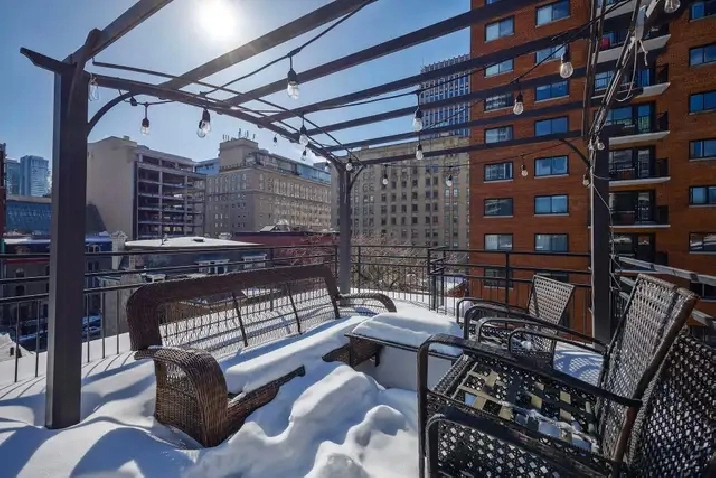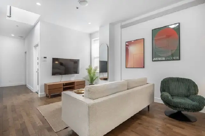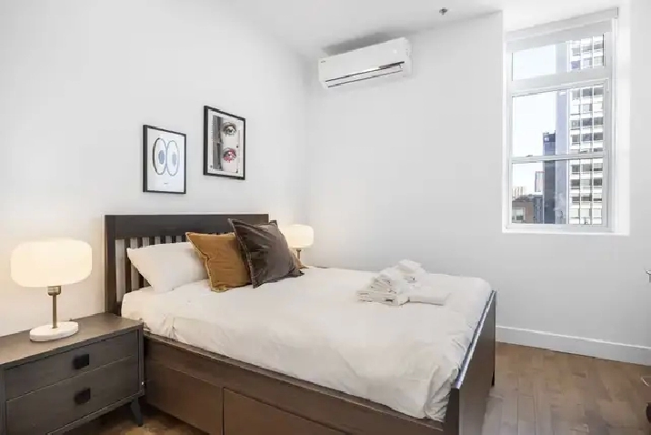 Beautiful fully furnished condo offering 1400 sq.ft of living space, located in the heart of downtown Montreal in a highly sought-after area close to universities, shops, and public transportation. Bright and spacious, it provides a modern and comfortable living environment, ideal for professionals, students, or couples.