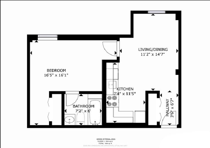 1 Bed 1 Bath