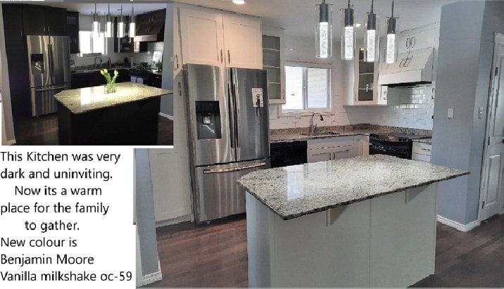 #Cabinet Refinishing-- professionally sprayed in our shop and completed in as little as a week. For a fraction of the cost of new cabinets and a full Reno we can update your Entire Kitchen. You Choose the colour and sheen and we can create the kitchen of your dreams!!