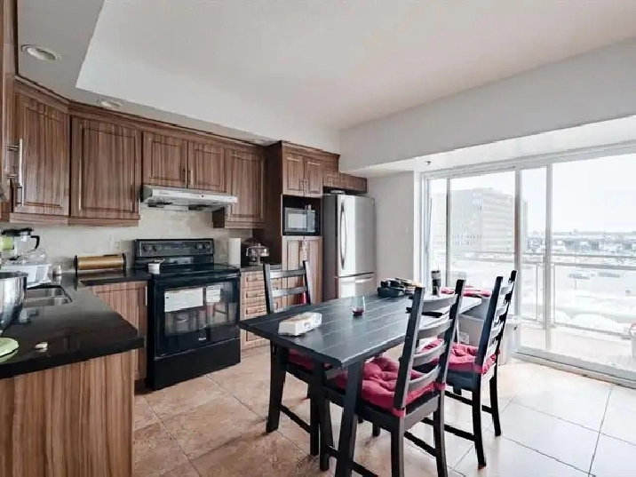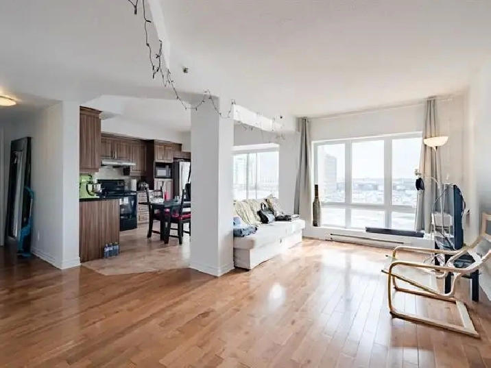 Bright and inviting 2-bedroom corner condo in a concrete building on Ward Street in Ville-Saint-Laurent! This sun-filled open-concept unit features large windows, a spacious living and dining area, a wall-mounted A/C, indoor parking and outdoor parking, storage locker, elevator access, and a large private balcony perfect for relaxing. Ideally located near transit, schools, parks, shops, services, Royalmount, and with quick access to Highways 15, 40, 520 and 13. Impeccably managed and exceptionally well maintained.