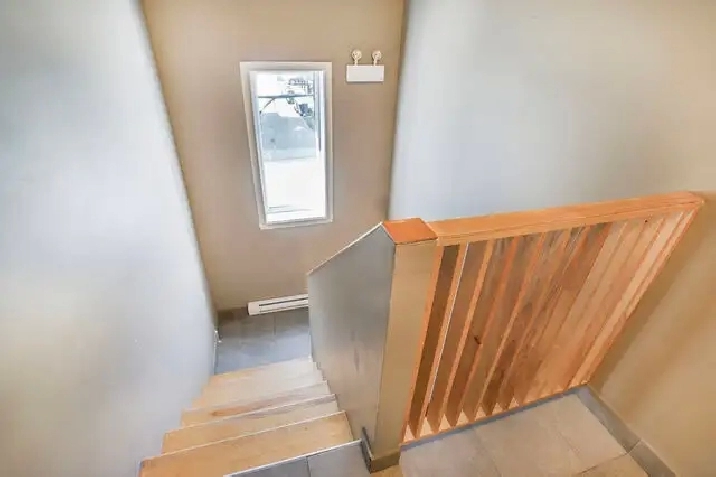 Occupation le 1er juin. Prix : 1100 $ par mois, incluant cuisinière et réfrigérateur en stainless. Pour un supplément de 75 $ par mois, il est également possible d’inclure une laveuse/sécheuse superposée. Parfait pour une personne seule ou un couple tranquille. Les animaux ne sont pas acceptés.