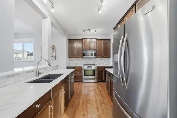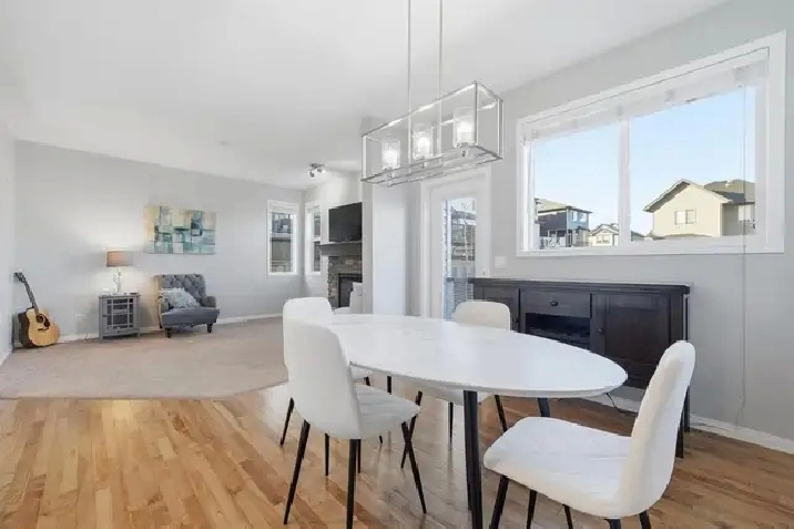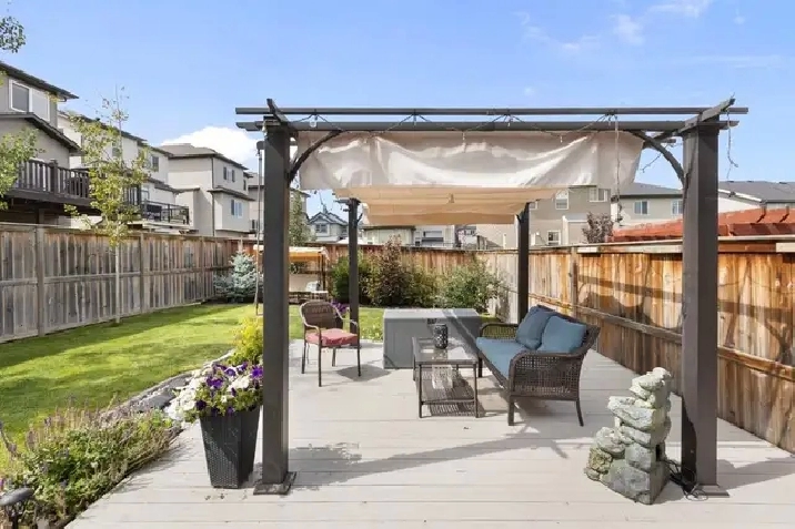 Welcome to 99 Sage Valley Park NW - a beautifully appointed residence where comfort, style, and community come together in one of Calgary’s most desirable neighbourhoods. With over 2,250 sq. ft. of thoughtfully developed living space, this family home offers an inviting first impression. Gleaming hardwood floors lead you through the open-concept main level, seamlessly connecting the living, dining, and kitchen areas. The bright kitchen features a spacious pantry, a breakfast bar accented with custom wainscotting, and an expansive dining space perfect for gathering with family and friends. The living room is warm and welcoming, centred around a cozy gas fireplace. A convenient powder room and main-floor laundry complete this level. Step outside and experience one of the home’s standout features: a generous 4,477 sq. ft. landscaped backyard. Enjoy summer evenings on the two-tiered deck complete with a BBQ gas line, relax under the pergola, and admire the established perennials, beautiful all season long with no annual planting required. Added trees provide both charm and privacy. Back inside, ascend the elegant staircase to your serene primary retreat, showcasing vaulted ceilings, large windows, a walk-in closet, and a luxurious 5-piece ensuite. Down the hall are two well-sized bedrooms and a 4-piece bathroom. A bright, open flex space at the top of the landing offers the perfect setting for a home office, craft area, or reading nook. The fully developed lower level features a fourth bedroom and an inviting entertainment space complete with a 65” TV and Bose sound system, also wired to the garage, ideal for movie nights or hosting guests at the built-in bar. A dedicated storage room and a rough-in for a future bathroom offer added convenience and value. Sage Valley is a community celebrated for its picturesque pathways, abundant green spaces, and family-friendly parks, perfect for evening walks, morning runs, or weekend adventures. You’ll appreciate being just minutes from Sage Hill Crossing and Creekside Shopping Centre, where cafés, restaurants, groceries, and everyday amenities are all within easy reach. Top-rated schools, nearby fitness facilities, and quick access to major routes ensure a lifestyle of ease and convenience. At 99 Sage Valley Park NW, you’re not just purchasing a home, you’re embracing a vibrant community you’ll be proud to be part of for years to come.