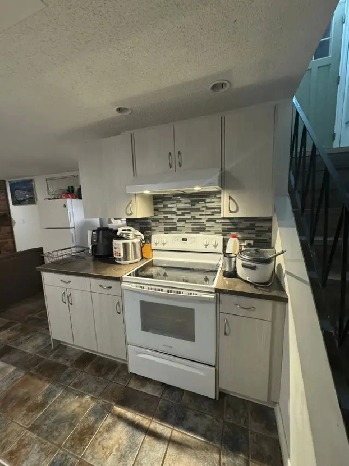 Brentwood location, ideal for students, professionals, or working individuals. The room is in a basement suite shared with two other male students.