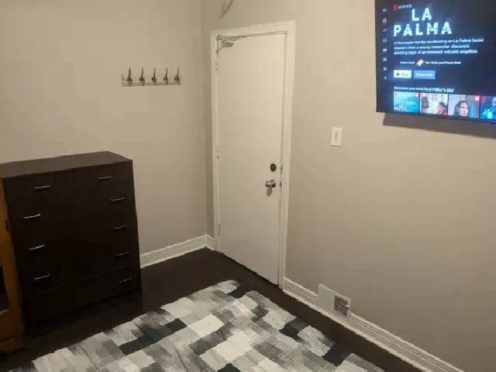 This is an entry level furnished suite - Steps from Elgin Street & the Canal and it has an extremely comfortable Double Sized $1000 memory foam mattress c/w a top cooling layer! a refrigerator, a microwave, a 6 drawer dresser, a night table and MOST IMPORTANTLY! A HUGE 55" wall mounted 4k ULED, SMART android TV complete with Netflix!!