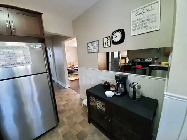 One room is available for rent in a fully furnished bright, very clean, and well-kept 1.5 story house in the fantastic quiet location in Fort Richmond. 10 minutes' walking distance to the University of Manitoba, amazing Kings Park and IG Field (stadium). One minute walk to catch the buses 662, 671, 672 and 13 minute walk – 74, F8, F9, 679, 889, BLUE.
