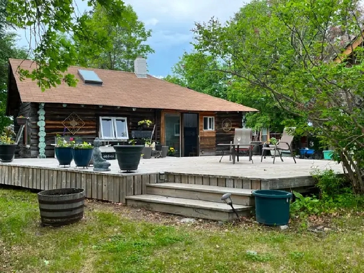 Spectacular one of a kind, boat/snowmobile access, waterfront retreat. Titled 4.2 acre property, with two turn key furnished rustic log cabins, adjoined by a large common deck. One of the nicest properties on lake Lac du Bonnet. Gently nestled into the mature forest with water on three sides. Cabin one is a 446 sq ft, with 2 bedrooms, sitting area and an attached 16x10 screen porch. Cabin two is a 615 sq ft cabin featuring a rustic kitchen, living & dining area and 1 bedroom. Side deck features a 16x10 dining gazebo with wood fireplace, BBQ and amazing water & sunset views. Shower house has on demand Bosch hot water, shower, sink and a composting toilet. Work shop has additional storage & the solar equipment powering 2 fridges, freezer, water pump & lighting. South side features a newer 6x32 dock with 10x10 shore deck. North side dock is adjacent to your own private beach & swimming area and provides excellent shelter & privacy. Dock slip can be rented from Granite Hills Marina, and it is only a short boat ride to Hay Bay. Outdoor enthusiasts and nature lovers will be amazed by the tranquility & beauty of this piece of paradise!!!
