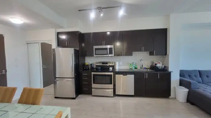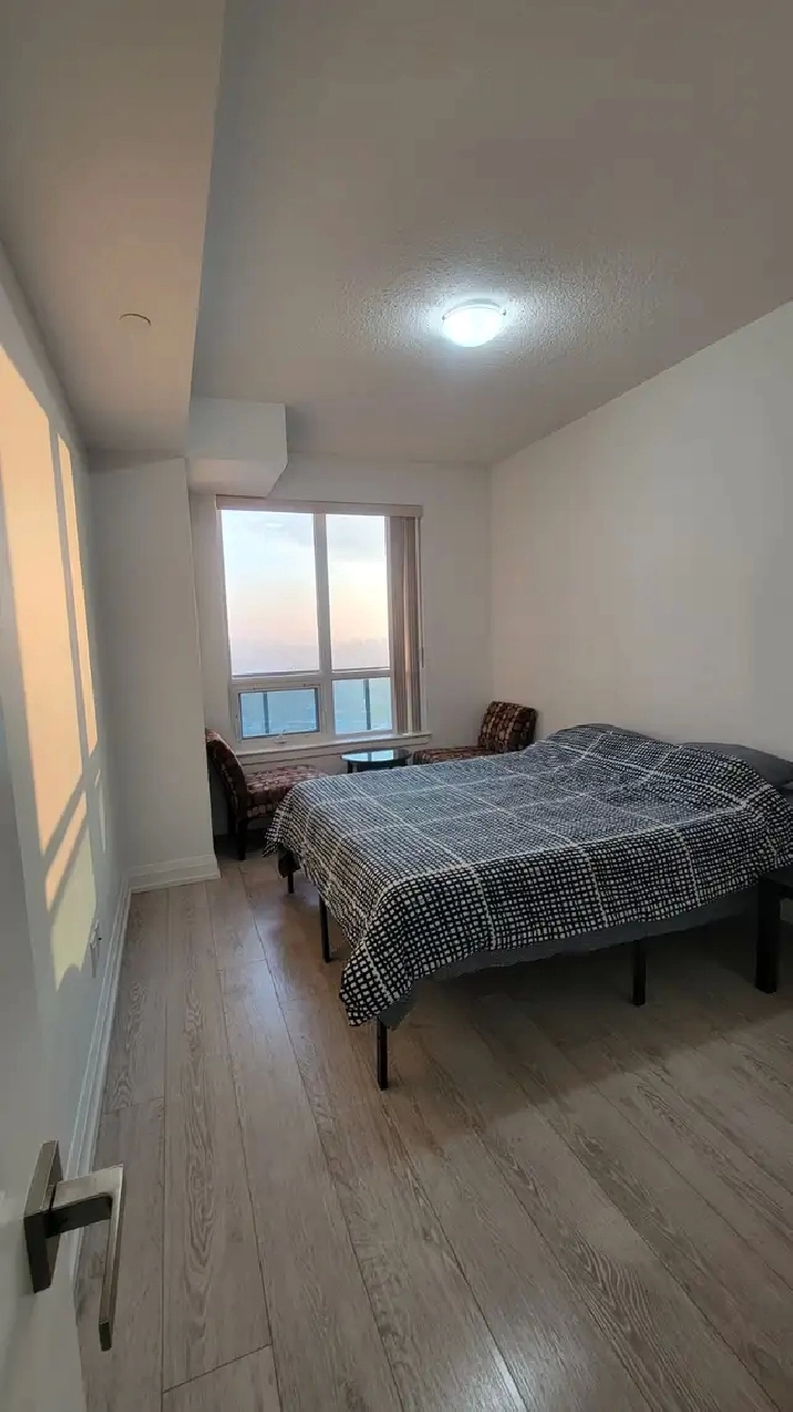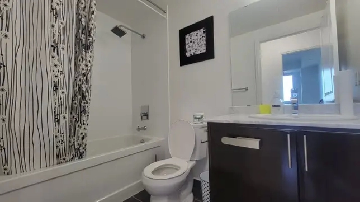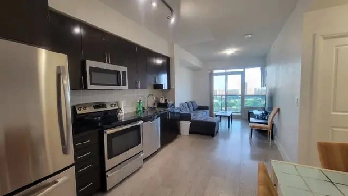 This bright and spacious Large 1 bedroom condo features soaring 9-ft ceilings, floor-to-ceiling windows, and a big balcony perfect for relaxing. Comes with 1 underground parking spot. Move-in ready and available furnished with 65 Samsung QLED Smart TV, new memory foam mattress and heavy duty storage bed. L-shape Sofas, dining tables and chairs, cooking ware and dishes, bedding and pillows. High speed internet.