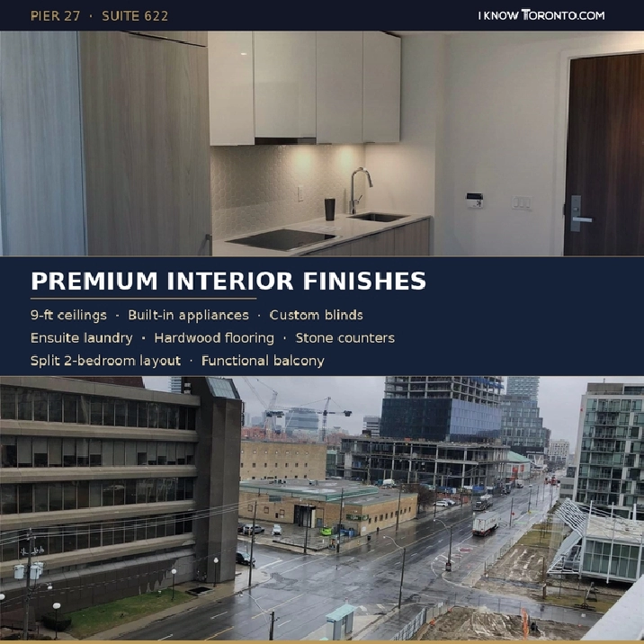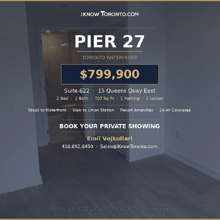 Welcome to one of Toronto's most coveted waterfront addresses. This stunning 2-bedroom, 2-bathroom suite at Pier 27 offers 707 sq ft of thoughtfully designed living space with a functional split-bedroom layout, 9-ft ceilings, and premium finishes throughout.
