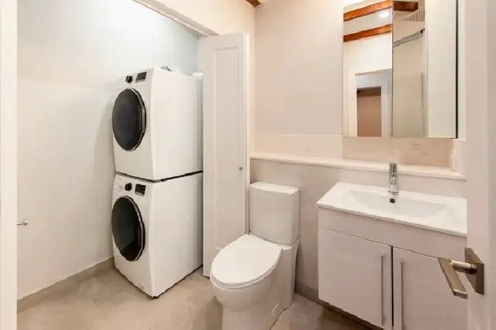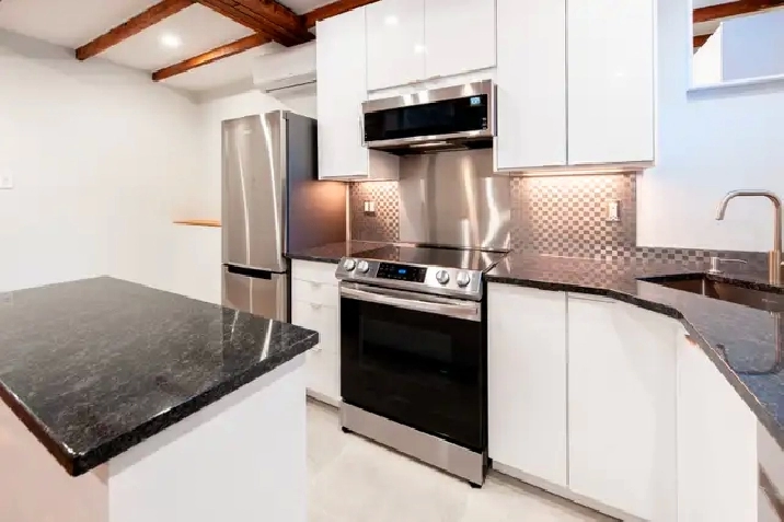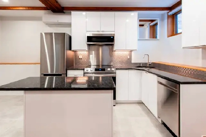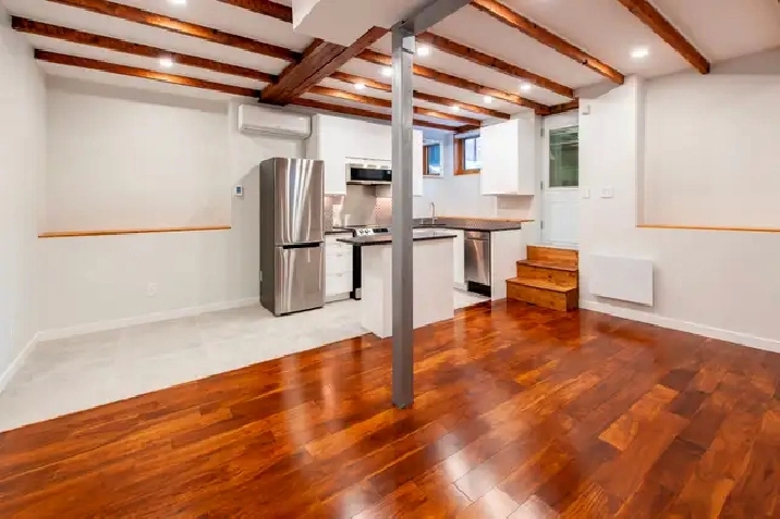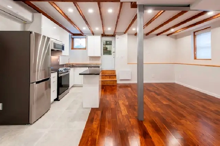 Demi sous-sol a des plafonds de 9 pieds, Air climatisé, chauffage au sol, fonte de neige automatique sur les marches extérieures, patio extérieur privee, électroménagers neufs, laveuse/sécheuse, lave-vaisselle; caméras de sécurité / interphone vidéo; fenêtres, portes et luminaires neufs. Parking /stationment dispo (additional$)