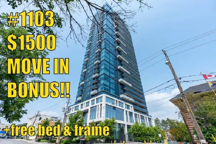 Enjoy resort-style living at 18 Erskine! Beautiful 1 Den Gibson Model with floor-to-ceiling windows, open layout, quartz counters, laminate floors & stainless steel appliances. Queen-sized primary with double mirrored closet.