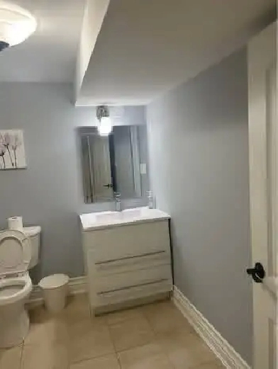 A new spacious basement apartment (around 1200 square feet) on a quite street in High Park area , 2 large bedrooms, 8 minute walk to Runnymede/ High Park Subway Station and Bloor Street. High ceiling, Central heating and air conditioning. Private separate entrance, new bathroom, new kitchen with new appliances(includes dishwasher), and private laundry in the apartment. Hydro is extra, 1 year lease. Available on May 1st or earlier.