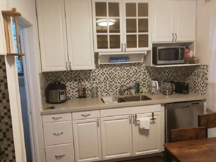 Seeking a small family or a group of 3 professionals or mature students for a beautiful furnished and well-maintained 3 bedrooms house in a safe, convenient neighborhood. The unit consists of an upstairs portion with two bedrooms, one newly renovated shared bathroom, laundry, and first floor with one-bedroom, full kitchen, and living room.