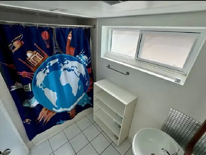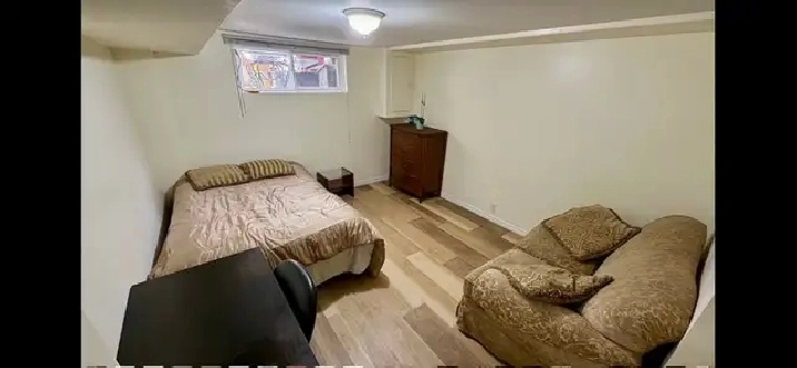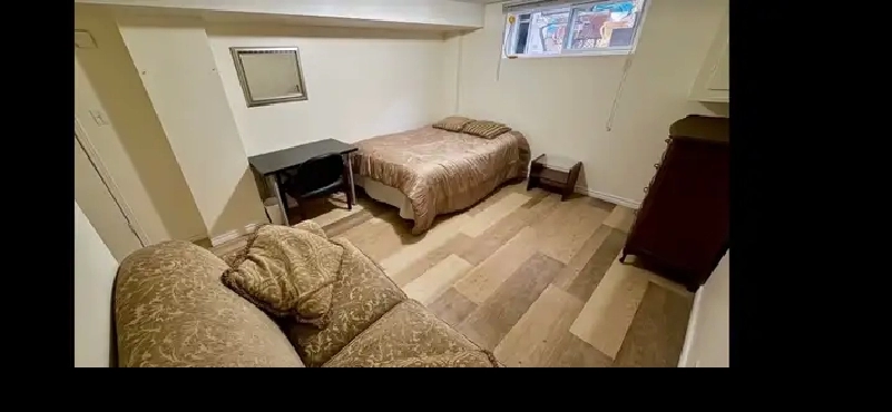 A spacious room fully furnished with a large window for rent in a quiet & clean renovated basement apartment.