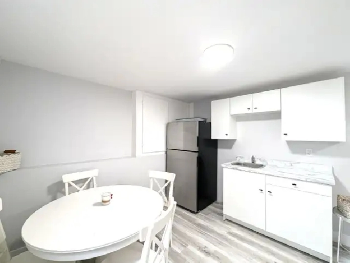 Brand new lower-level studio apartment in a lovely family home in Timberlea. Fully separate entrance. Pot lights, a Glass door in the kitchen and an extra-large window in the main space create a bright and sunny space. The kitchen has a new table which seats 4, a refrigerator, a 2-burner electric cooktop and a countertop oven/microwave. New 3-piece bath.